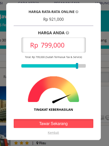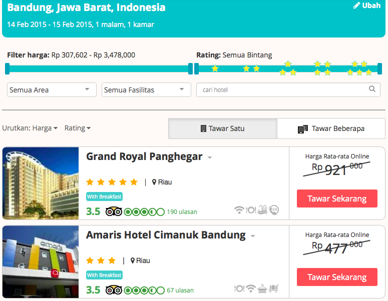 Misalnya, saya memilih Grand Royal Panghegar, dengan harga rata-rata online Rp921.000,- maka saya dapat langsung menawar dengan memencet ‘Tawar Sekarang‘. Bukan yang lain.