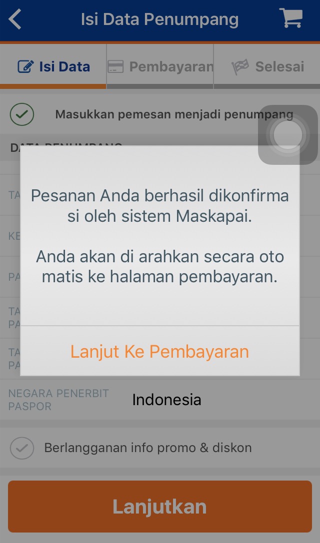 6b. Pemesanan berhasil dikonfirmasi