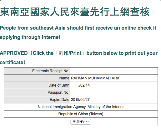 Visa Taiwan